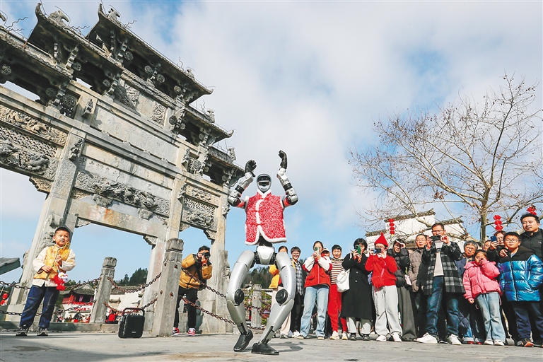 上海豫园灯会融合传统民俗与现代光影技术,吸引中外游客驻足;广东汕头骑楼街巷张灯结彩,英歌舞刚劲豪迈;陕西西安大唐不夜城,机器人写福字、AI猜灯谜等活动趣味十足,传统年俗与现代科技碰撞出绚丽火花……年味在山河间漫溢铺展,人们在憧憬中开启新篇。