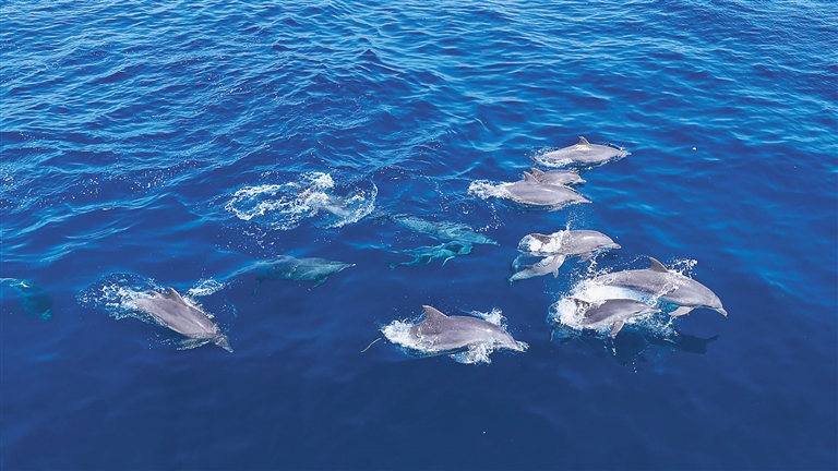 “这片海,越来越有生机了。”张镓盛保存下珍贵影像。画面里,海豚跃出水面,阳光洒在银灰色的背脊上,熠熠生辉。