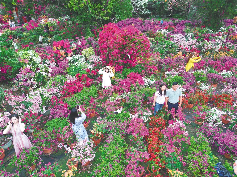 文盛飞说,村里的三角梅能火,离不开媒体和自媒体的宣传。“游客被美景吸引,自发发布短视频,吸引了各地众多游客。尤其是北方人,很难不被海南春色打动。”他说,加之主流媒体也进行报道,今年到来的游客特别多。“今年春节大年初一,村外的车辆排起了长龙”。