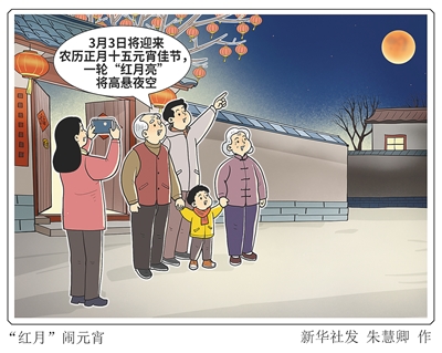 据新华社南京3月1日电(记者王珏玢 邱冰清)3日将迎来农历正月十五元宵佳节,今年元宵节不仅正巧迎来正月的满月,当晚还将邂逅一次难得的月全食。一轮“红月亮”将高悬夜空,为元宵佳节增添一份宇宙级别的浪漫。