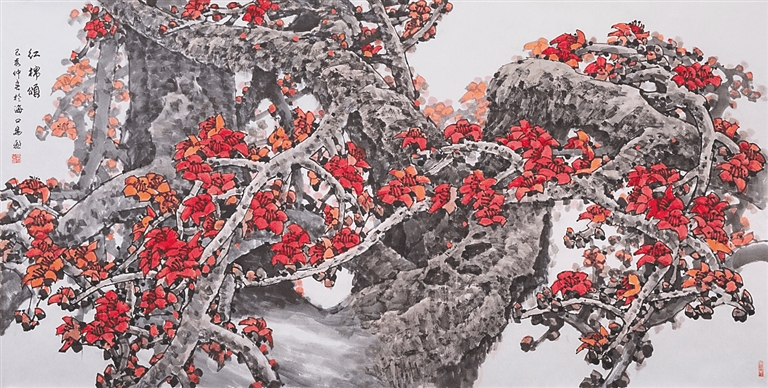 《红棉颂》(国画)