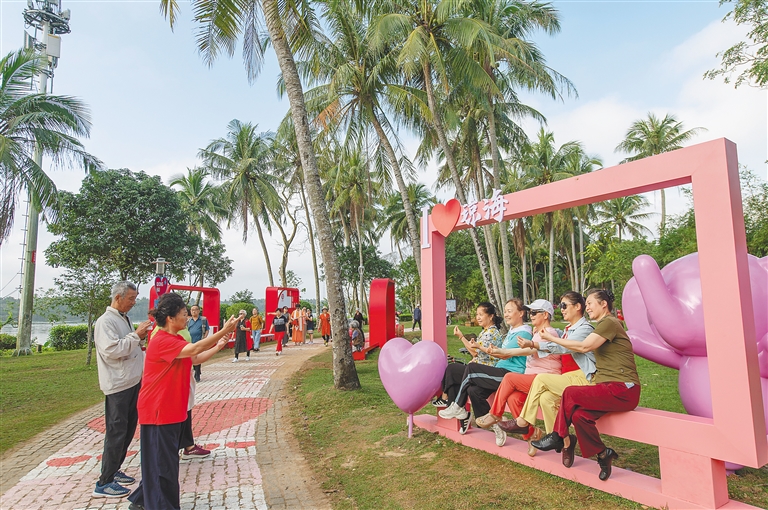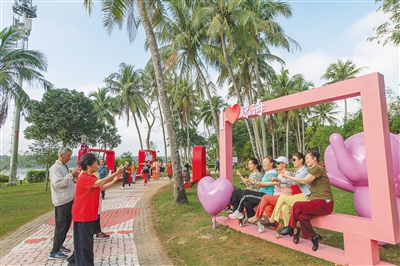 近来,海南持续加强民生基础设施建设,提高群众获得感幸福感。图为琼海市万泉河公园,市民享受闲暇时光。(资料图)