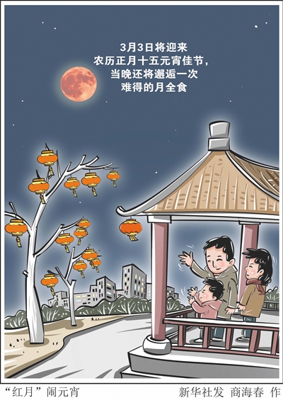 新华社天津3月2日电(记者周润健)今年元宵节,适逢月全食。届时,一轮古铜色的月亮将悬挂夜空,与街头巷尾的红灯笼相映成趣。那么,如何观测和拍摄这轮“红月亮”?业内人士来支招。