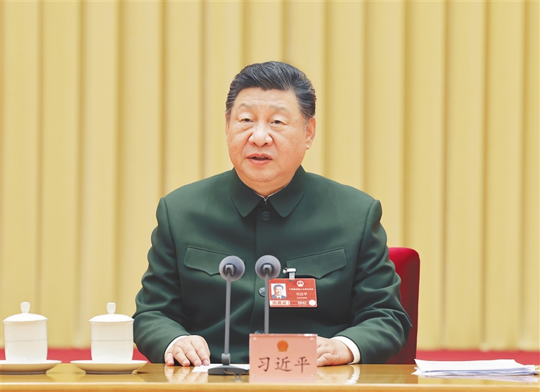 新华社北京3月7日电(记者梅常伟)中共中央总书记、国家主席、中央军委主席习近平7日下午在出席十四届全国人大四次会议解放军和武警部队代表团全体会议时强调,“十五五”时期要如期实现建军一百年奋斗目标、高质量推进国防和军队现代化,必须坚持好、运用好、发展好政治建军这个重要法宝,毫不动摇坚持和加强党对军队绝对领导,充分发挥政治建军特有优势,凝心聚力推动国防和军队现代化行稳致远。