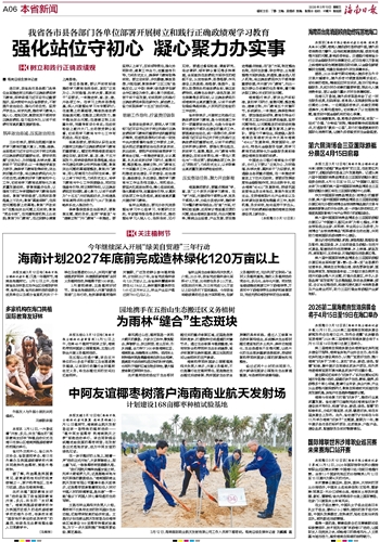 省林业局生态修复处相关负责人介绍,2025年,我省完成造林绿化面积47.3万亩,比年度任务多2.3万亩,实现良好开局,为三年完成120万亩以上总任务打下坚实基础。今年我省将继续调动社会各方面积极性,创新义务植树形式,充分利用“互联网+”全民义务植树基地,推动义务植树活动常态化、多元化、全年化开展。同时我省继续推进南渡江中下游海岸带、万泉河中下游海岸带生态保护和修复项目,完成灾损沿海防护林的生态修复。
