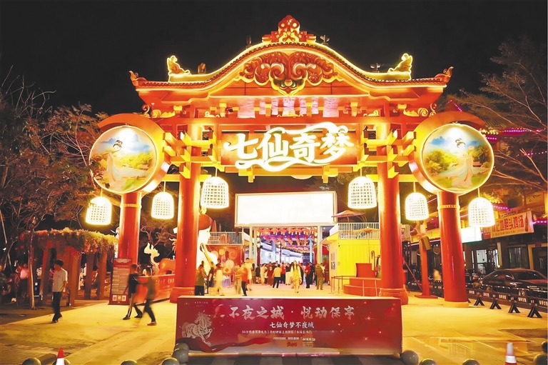 “我们深度挖掘保亭本土黎族苗族文化与七仙传说内涵,围绕‘七位仙女’与‘七大神兽’故事脉络打造沉浸式神话叙事场景,创造出很多原创的精彩主题演出。”保亭七仙奇梦不夜城项目负责人王景国介绍,作为全国首个免费开放的黎苗神话主题演艺不夜城,这里每日演出超10场,让市民游客在夜间休闲中感受民族文化的独特魅力。