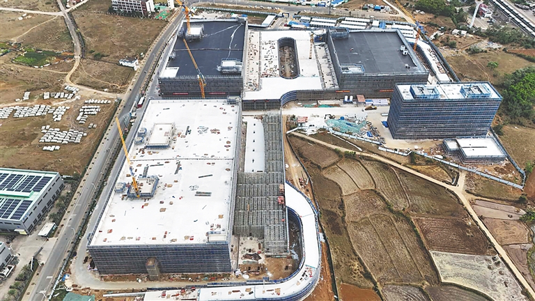 塔吊林立、机器轰鸣,建设者步履匆匆……初春的海口国家高新区,新海陆岛物流园区起步区建设现场热潮涌动,7栋建筑已顺利封顶,近2500名建设者正倒排工期、挂图作战,向着2026年底建成投用的目标全力冲刺。