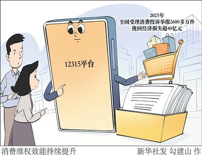 记者3月15日从市场监管总局获悉,2025年全国通过12315平台、电话等渠道共受理消费者投诉、举报、咨询4386.6万件,其中投诉举报2646万件,同比增长9.8%。全年为消费者挽回经济损失43.5亿元,消费维权效能持续提升。新华社发