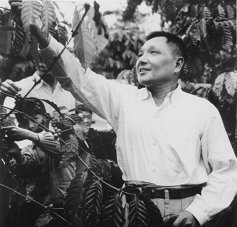 又一年春天,1961年2月,在兴隆华侨农场咖啡园,时任国务院副总理的邓小平兴致勃勃地察看咖啡等热带作物长势,欣然说道:“在兴隆看热带植物,等于看到东南亚一带乃至世界各地的热作。”如今凝视那张邓小平在兴隆咖啡园的珍贵照片,他面带微笑、从容亲切,伸手轻摘咖啡果的神情,专注而温暖。