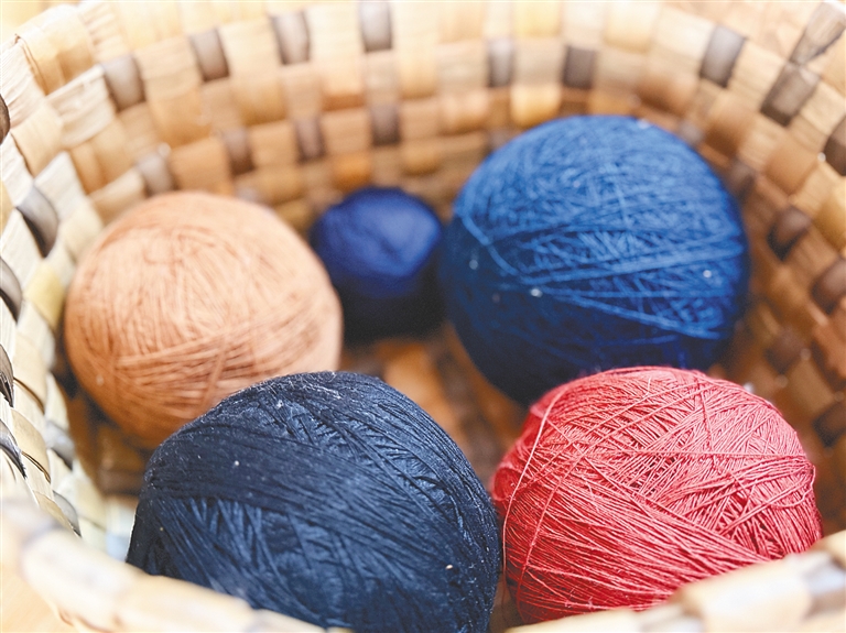 在黎锦织造技艺中,纺线很考验耐心。羊玉兰介绍,她目前用的线以海岛棉为原料,需将棉花脱籽抽纱成锭,再经滚、搓、拉、捻一系列操作使其成型,一天只能纺出很少的线。“织锦就是很费工夫,两三年织一件也不算夸张,很多人没有耐心学。”