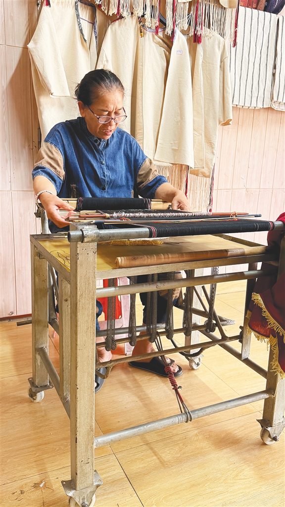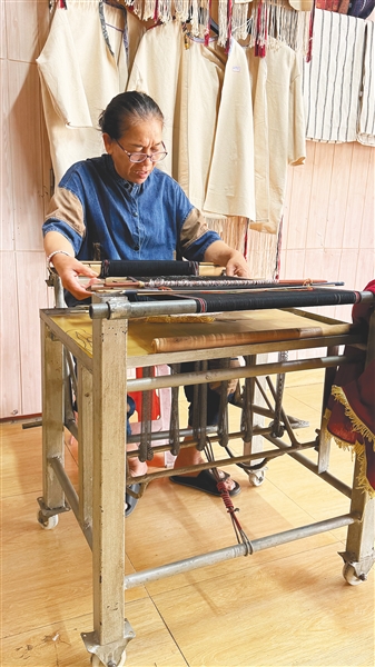 大儿媳、二女儿和小女儿,如今都能织出精美的黎锦。羊玉兰“百宝箱”里的“家当”,正一件一件交接到下一代手中。“女儿们嫁到了其他地方,但平时需要什么织锦工具,都可以随时回来拿。”她说。