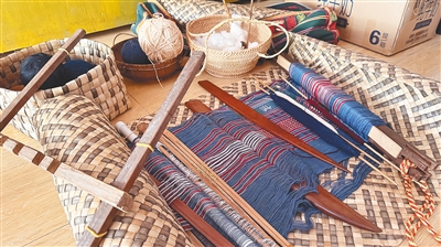 打开一个约1.2米长、收纳多种工具的“百宝箱”,羊玉兰向记者展示了她常用的踞腰织机,及配套的11种木质工具:牵线架、拉经卷布轴、打纬刀、足踩蹦经棍、挑经刀、夹布片、分经棍、定经格片、定幅棍、提综杆、腰带。她一一介绍,如数家珍。