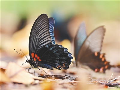“它们都是凤蝶科裳凤蝶属的成员、国家二级保护动物,体型较大。”顾茂彬介绍,金裳凤蝶的个头要比裳凤蝶略大一点,是我国体型最大的蝴蝶。