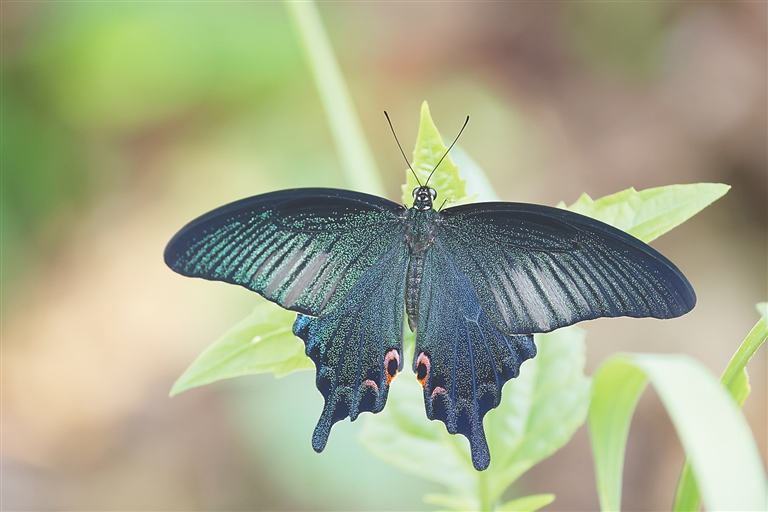 截至目前,昌江海尾国家湿地公园已记录蝴蝶152种,其中凤蝶有17种,而裳凤蝶也成为园区记录到的第一种国家二级保护级别的蝴蝶。