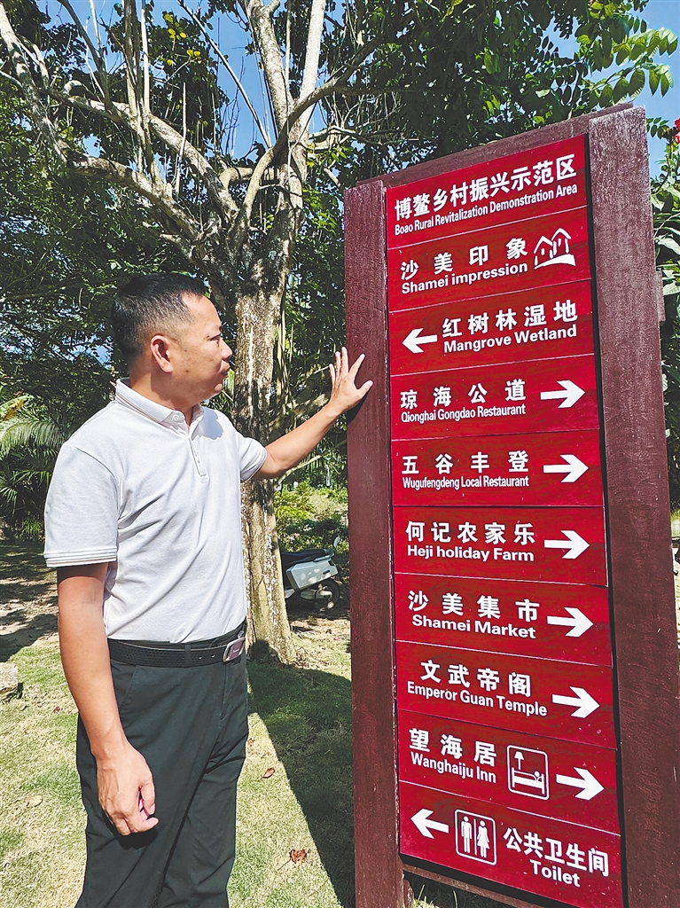 村道旁,沙美村党支部书记、村委会主任冯锦锋正带着几名村干部,逐个检查修缮完毕的多语言指示牌。随着博鳌亚洲论坛2026年年会临近,这座坐落于万泉河畔的小渔村,正以开放包容的全盛姿态,准备迎接八方来客。