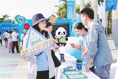 启动仪式刚结束,广场上的互动体验区、展览展板区就迅速热闹起来。巨型亲子飞行棋区域,孩子们笑声不断;水质检测体验区的“小科学家”们正目不转睛地盯着容器中的水……“我们通过互动体验游戏拿到很多小礼品,也学到许多节水和水资源保护利用的知识。”三亚市民刘啸说。