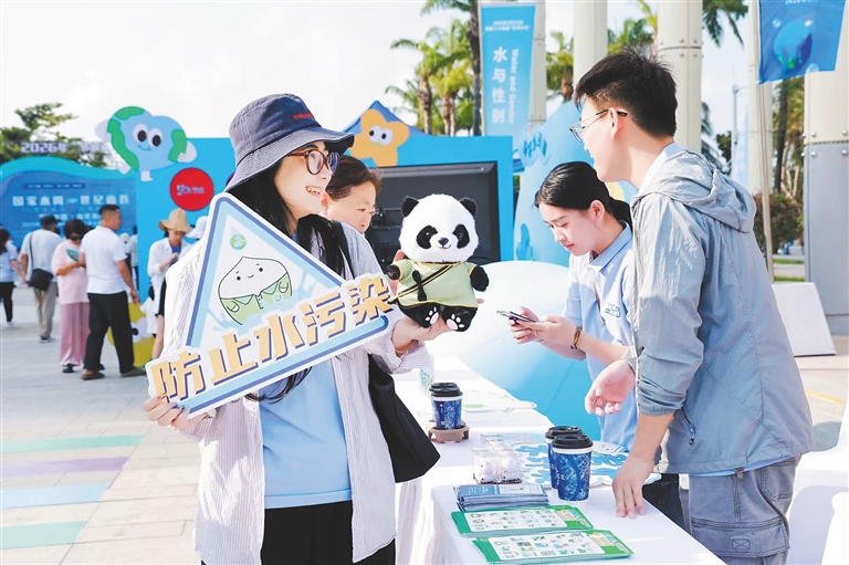 本报三亚3月22日电(海南日报全媒体记者周晓梦)打卡、集章、手绘体验、水知识答题、赢礼品……3月22日上午,三亚市大东海广场,2026年“节水中国行”海南三亚主题宣传活动现场气氛热烈。本次活动紧扣第三十四届“世界水日”与第三十九届“中国水周”宣传节点,以“节水中国 自贸海南”为主题,通过多元化、沉浸式节水宣传,全力营造全民节水浓厚氛围。