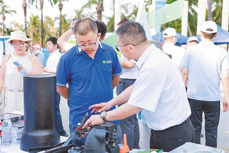 另一侧,节水技术与智能器具展区,节水龙头、高效灌溉设备等一字排开,专业人员现场演示操作,讲解节水原理,吸引不少市民上前咨询。“我们带来了一款‘节水精灵’的水知识智能讲解产品,可应用在校园科普等场景,比较受关注。”济辰(广东)科技有限公司区域经理林道茂介绍。