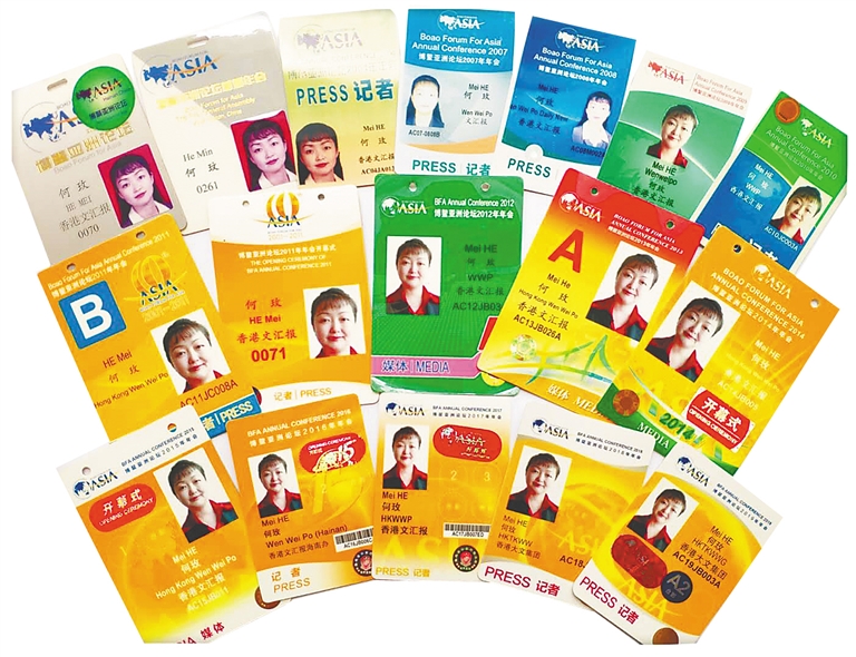 世界即将进入博鳌时间,香港大公文汇传媒集团海南特派记者何玫特意找出她保存的20多张博鳌亚洲论坛年会采访证(记者证),给它们拍了一张“全家福”。“这些证件很有纪念意义,它们记录了我的职业生涯。”