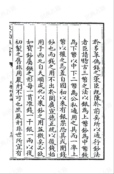 为此,丘濬创造性地提出“三币之法”:“以银为上币、钞为中币、钱为下币,以中下二币为公私通用之具,而一准上币以权之焉。”白银、纸钞、铜钱三种货币,可以同时在市场上流通使用;但在价值上,国家以白银来衡量铜钱、纸钞的价值,银币就起到了衡量钱币和钞币购买力的作用。以白银为本位的货币改革方案,丘濬在《大学衍义补·制国用·市籴之令》中作了详细论证。