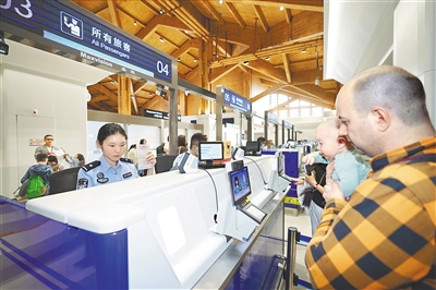 3月27日,海南自贸港迎来全岛封关运作100天。据统计,封关运作以来,海口出入境边防检查总站共验放出入境人员97.5万余人次,其中,免签入境外籍旅客22.3万人次,同比增长54%。 图为近日凤凰边检站执勤民警为入境旅客办理边检手续。