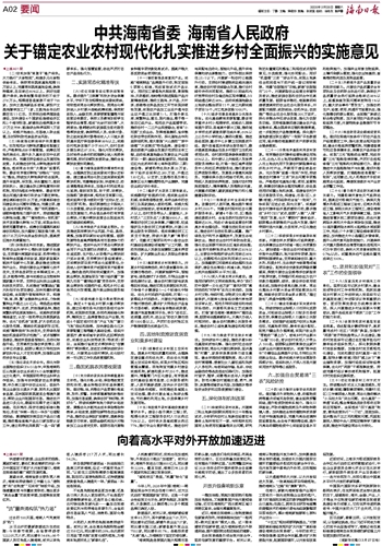中共海南省委 海南省人民政府 关于锚定农业农村现代化扎实推进乡村全面振兴的实施意见
