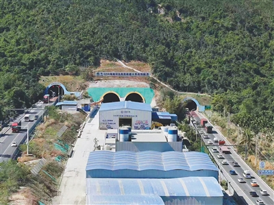 “新建的这条连拱隧道,也是双向四车道。”海南交通集团项目驻场代表赵新表示,连拱隧道方案是根据新建大茅隧道的地理位置等综合因素采用的,这种结构形式增大了新建隧道与既有隧道之间的净距,更有效地降低了施工时对既有隧道车辆通行的影响。该工程的施工区域紧邻现状隧道,并没有占据目前的车道,现有的双向四车道正常通车。
