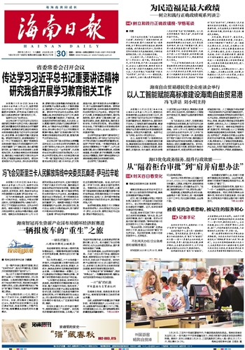 海南日报报业集团旗下媒体: 海南日报 |南国都市报 |南海网 |南岛晚报 |证券导报 |法制时报 |海南农垦报 返回首页