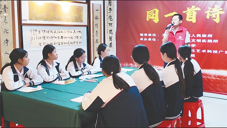 作为一名语文教师,汤有波还有一个特别的身份——文发书画研究院的发起人之一。3年来,他扎根龙楼镇,利用业余时间投身社区书画公益,以笔墨为媒,连接起社区与校园、传统与现代、平凡生活与星辰大海,走出了一条独特的社区教育公益之路。因为这,他被海南省社区教育指导中心授予2025年“百姓学习之星”的荣誉称号。