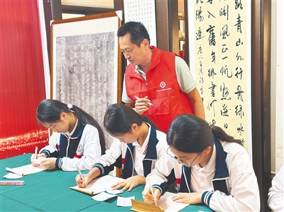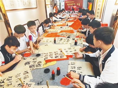 谈及成立文发书画研究院的初衷,汤有波的回答朴实而真诚。从小对书法有着浓厚兴趣的他,工作之余一直坚持练字,始终希望有一个属于自己的空间,在闲暇时静静书写。“教语文,对学生的书写有要求。”他坦言,受信息技术影响,不少学生不太注重汉字书写,考试中第一道书写题的得分常常不理想。“通过公益活动,希望能提高孩子们对书写的认识和能力。”
