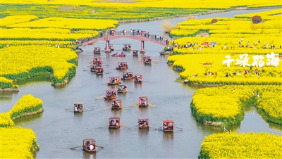 图为3月28日游客在江苏省兴化市千垛景区赏花游玩。新华社发