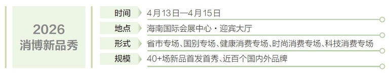 2026消博新品秀将于4月13日至15日在海南国际会展中心迎宾大厅举行,设置省市专场、国别专场、健康消费专场、时尚消费专场、科技消费专场等五大主题专场,40余场新品首发首秀将开展,涉及近百个国内外品牌。