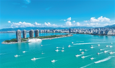 航拍三亚湾,游艇密集游弋出海。海南日报全媒体记者 王程龙 摄