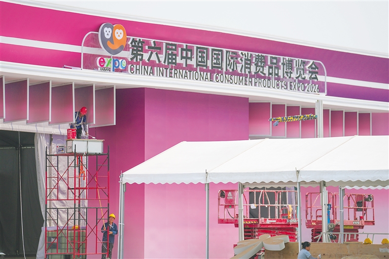 4月7日,第六届消博会进入倒计时,主会场海南国际会展中心布展工作正火热进行。 海南日报全媒体记者 李天平 摄