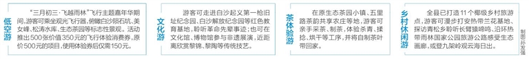 为方便游客深度体验白沙,发布会介绍了低空游、文化游、茶体验游、乡村休闲游四个主题游玩攻略。