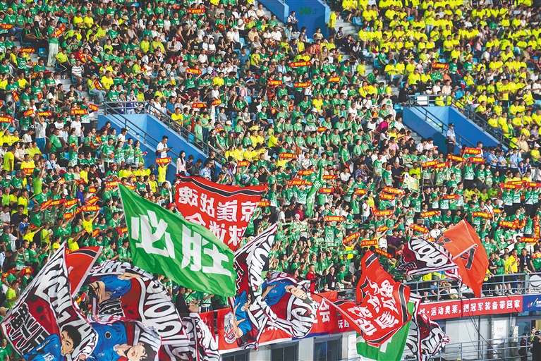 “海口加油!”“琼中必胜!”赛场观众席,球迷的呼喊声在鼓手引领下一浪盖过一浪,起伏的人浪与飞驰的足球交织成一片激情的海洋。绿茵场上,双方球员你追我赶、攻防交错。每一次精准的传球都引发全场惊叹,每一轮犀利的射门都紧紧牵动着观众的心弦。比赛进程胶着激烈,球员们在场上奋力奔跑、顽强拼搏,用汗水诠释着对足球的热爱。