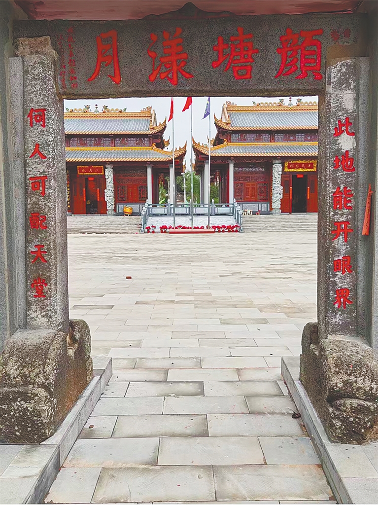 喜欢楹联文化的读者可能会注意到,海口市五公祠游览区内的苏公祠也有一副名联:“此地能开眼界,何人可配眉山。”为民国四年(1915年)琼崖道尹兼琼海关监督朱为潮重修苏公祠时题写,1980年由广州美术学院教授、著名书法家麦华三重书。“颜塘漾月”之美景位于古代颜塘村前,每当月照塘中,波光荡漾,水光月光如金银宫阙映入眼帘。明代嘉靖年间(1522—1566),“颜塘漾月”凭借其优美秀丽的自然景观成为“儋州八景”之一。