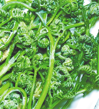 童年时光,我最喜欢跟着母亲上山采蕨菜。蕨菜一般长在比较隐蔽的地方,加上它有“保护色”,不易发觉,这就是考验眼力的时候了,不时用棍子拨一拨。采摘的时候,如果发现蕨菜顶头的嫩叶都已舒展,那就说明它已经老了。若是发现蕨菜茎部很硬,那也是老了的表现,只能取顶端嫩的部位了。母亲告诉我,采摘时,要用拇、食、中三指轻轻捏住蕨菜腰部,稍用力一提,蕨菜就从嫩的地方断了。