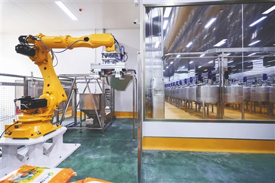 智能搬运机器人装载着一桶桶发酵原料平稳穿梭,机械臂精准完成洗瓶、灌装、封盖、贴标等全流程工序……走进海南年百顺国际贸易有限公司的糟粕醋智能生产车间,一幅高效智能、洁净有序的现代化酿造新图景正徐徐展开。