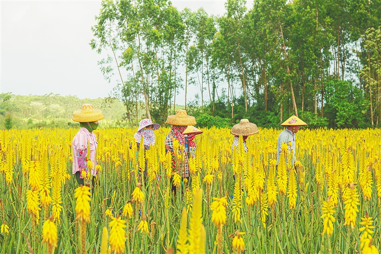 琼海姑娘符玉果的脑海里,有一幕童年画面总是鲜活:盛夏里,折下一角芦荟,薄薄切下一片,莹润汁液漫溢,涂在身上,被阳光灼得发红的皮肤,逐渐舒缓,只留下一缕缕凉意。