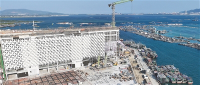 渔业交易中心项目预计今年下半年完成室内装修及设备安装。项目主要打造集产业研学、商业服务、渔业交易于一体的特色商业中心,可实现渔船靠岸后,渔获分拣、批发、冷冻、储存、销售全流程集中运营,集聚产业资源,形成强大聚客效应。