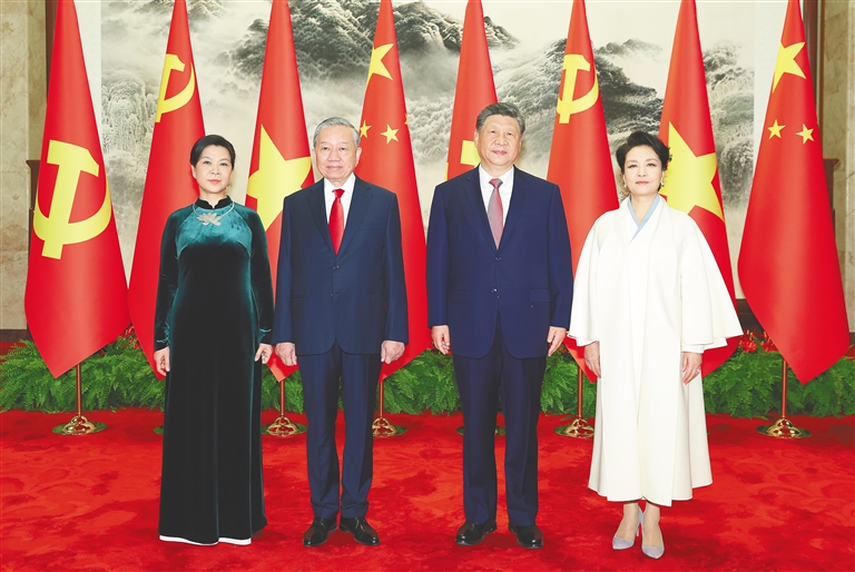双方要同心协力,携手同行现代化道路。要加快发展战略对接,优先推进基础设施互联互通。要加强人工智能、半导体、物联网等新兴领域合作。中方欢迎更多越南优质产品进入中国市场。双方要继续加强旅游、文化、媒体、教育、卫生、体育等友好交流合作,促进两国人民相知相亲。我愿同你一道宣布启动2026-2027年“中越旅游合作年”。
