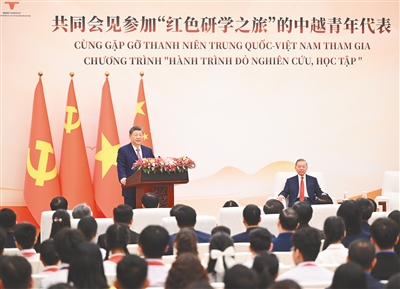 苏林表示,“红色研学之旅”启动一年来,上千名越南青年沿着老一辈领导人足迹参访在中国的红色遗址,体悟两国的革命传统和深厚友谊。青年是越中两党两国关系的重要桥梁,希望两国青年进一步坚定理想信念,提高政治本领,掌握科学知识,深化对越中关系的认识,为各自国家发展和两国友好发挥重要作用。