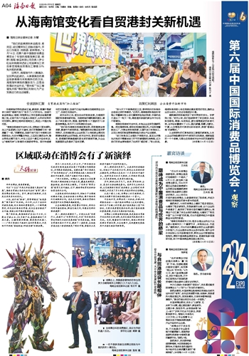 从全球原料的汇聚地到加工增值的新高地,从本土企业的转型蝶变到中外商贸的双向奔赴,海南馆里的一个个故事,勾勒出自贸港封关运作后的发展新图景。(本报海口4月15日讯)