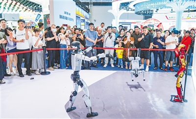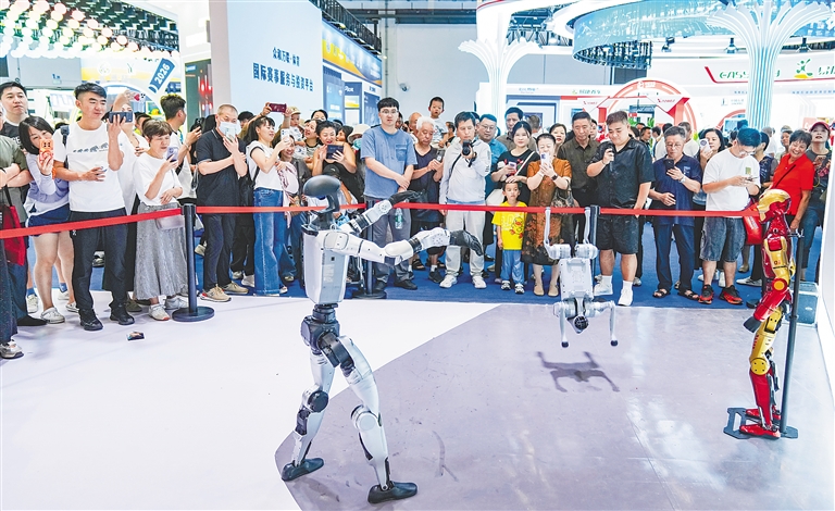 4月16日,第六届中国国际消费品博览会社会公众开放日首日,海南国际会展中心人气火爆,全球好物、国潮精品、前沿科技集中亮相,市民游客争相体验、选购打卡。图为市民游客在观看智能机器人表演。