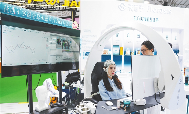 “用手握住感应器,90秒左右就能完成AI脉象检测,包括脏腑、气血、经络、脊柱等4方面的几十项检测项目。”在消博会2号馆百联股份的展台,一批助老科技与适老化产品集中亮相,工作人员正在现场演示AI中医大脑如何“把脉”,在一台智能装备上完成“采集、评估、方案、干预、监测”的全数字化记录与智能化干预。