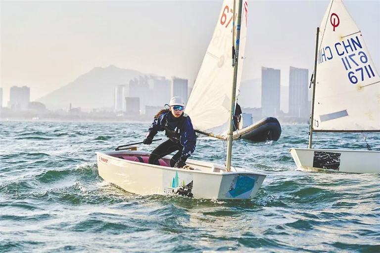 2025年,倪艺珈在赛场上逐渐崭露头角。她辗转于国内外各大赛场,全年参加高水平赛事超过16场,凭借顽强的拼搏和稳定的发挥,交出一份亮眼的成绩单:先是在全国帆船冠军赛(OP女子甲组)中夺得亚军,成功获得世锦赛参赛资格并入选国家队;随后在7月于斯洛文尼亚举行的世界OP级帆船锦标赛上,面对全球287名顶尖选手,她稳扎稳打,最终位列第33名;同年12月,在三亚亚沙会帆船项目选拔赛中,她更是一举夺魁,以第一名的成绩锁定了代表中国队出征三亚亚沙会的资格。
