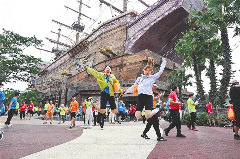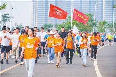 亲子、夫妻、朋友、同事……大家相约着一起参加健步活动,一路上欢声笑语、拍照打卡,展现了海南人民昂扬向上的精神面貌,也进一步推广了海南城市名片,积极推动海南文体旅深度融合发展。