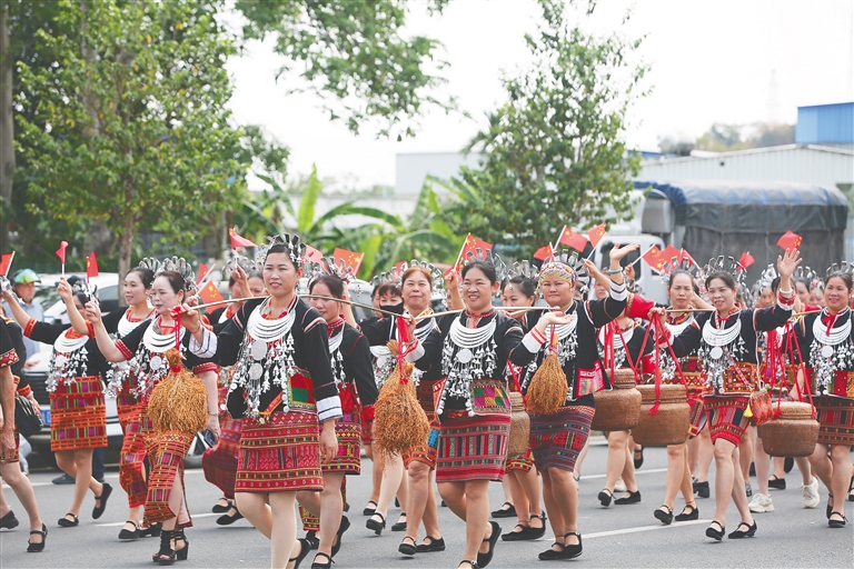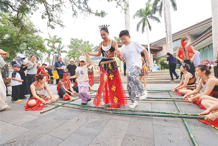 留学生安娜在海南生活了两年,第一次参加海南“三月三”的她兴奋地用中文说:“我看到了黎锦、苗绣的美丽,也看到了汉服的优雅,不同民族的美和谐地融合在一起,这让我真正理解了什么是‘同心圆’。”