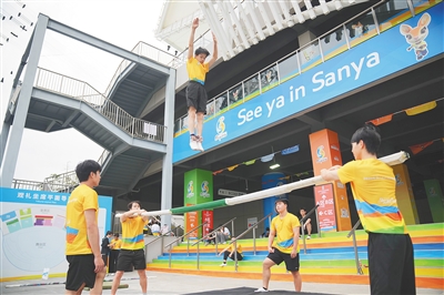 “超模天团”展现了力量与美,来自海南师范大学音乐学院的舞者们,则用灵动的肢体语言为亚沙会注入了流动的韵律。舞蹈学专业大三学生李湘铎,将自己的专业功底与亚沙会的运动项目巧妙结合,呈现沙滩运动的力与美。他的同学王一帆,则和伙伴们身穿充满热带风情的特色服饰,在悠扬旋律中翩翩起舞,展现出海南人民的热情好客。